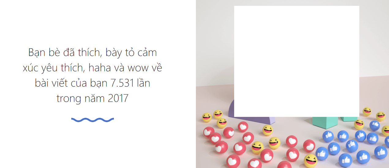Không những thế, tính năng này còn cho bạn biết trong năm qua, bạn đã trở thành bạn bè trên Facebook với bao nhiêu người, Bạn bè đã thích, bày tỏ cảm xúc yêu thích, haha và wow về bài viết của bạn bao nhiêu lần, Fan “ruột” của bạn (người like, thả tim nhiều nhất) là ai…