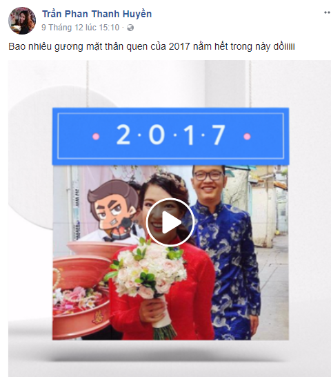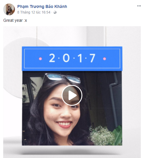 Ngay từ đầu tháng 12, cư dân mạng Việt đã bắt đầu chia sẻ tính năng này. Càng ngày, những clip Year in review xuất hiện càng nhiều. Năm nay, đoạn clip này được ”decor” rất đáng yêu với những câu quote như: “Một năm không chỉ có 365 ngày”, “Mà còn là từng người bạn mới”, “Là mọi kỷ niệm”, “và mọi sự ủng hộ dù là nhỏ bé'”, “Vì một năm không chỉ được tính bằng thời gian”, “Mà còn là tất cả những người ở bên bạn”, tạo nên những cảm xúc rất đáng yêu cho những ngày cuối năm.