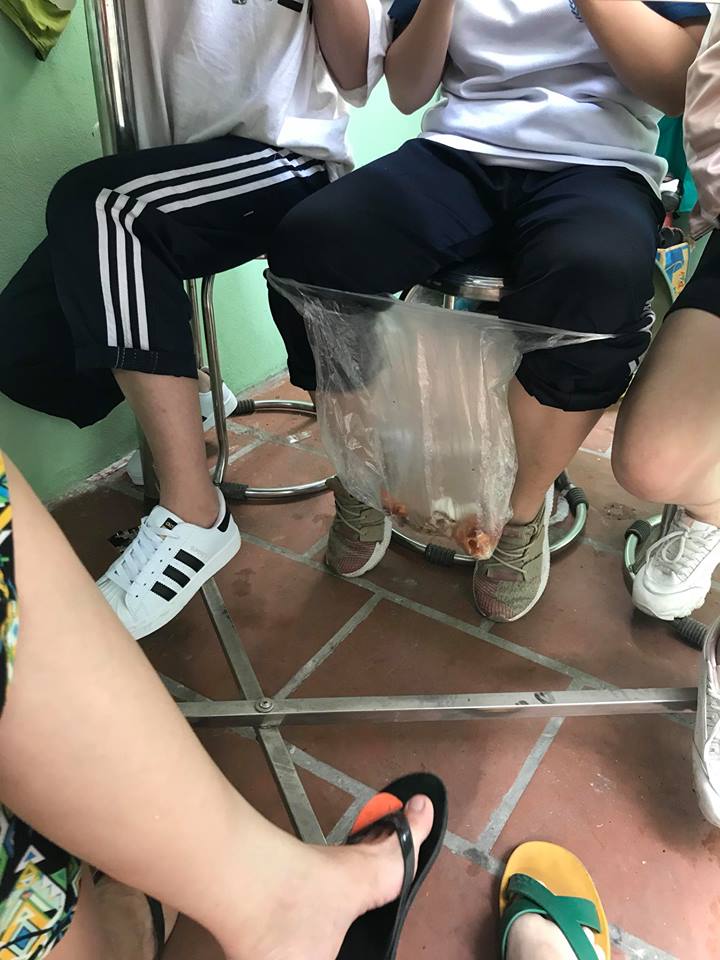 Theo hình ảnh đính kèm, nữ chính đang mặc đồng phục thể dục của một trường nào đó. Nhìn tổng thể ai nấy sẽ hết lời khen ngợi đúng là bàn con gái ăn uống sạch sẽ. Tuy nhiên chỉ cần liếc nhẹ xuống gầm bàn sẽ thấy cô nàng đang đeo cái túi bóng giữa hai chân để xả rác.