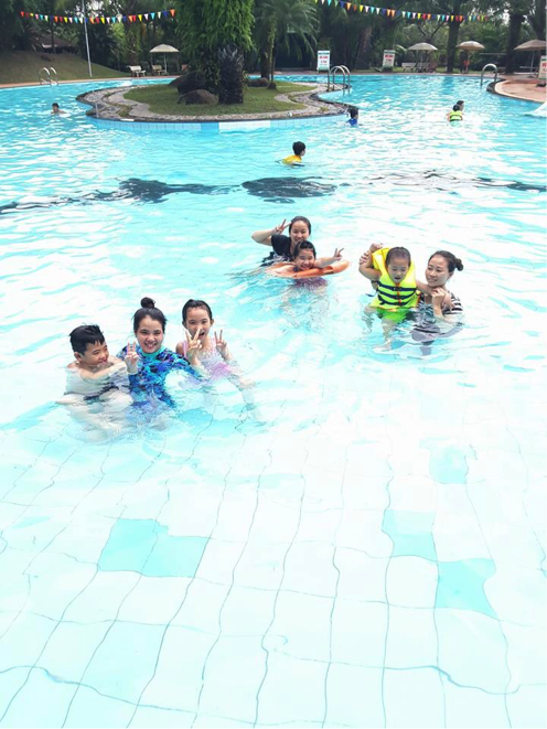 Giữa cái nóng oi ả này, Vườn Xoài thật biết chiều lòng du khách khi có một hồ bơi sạch sẽ và mát mẻ thế này.