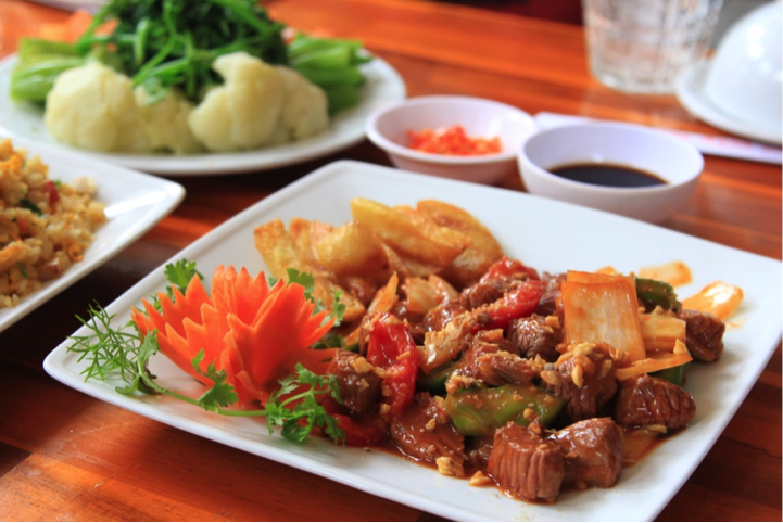 Vườn Xoài có nhiều khu ăn uống với không gian gần gũi với thiên nhiên giúp những bữa ăn trở nên ngon miệng hơn. Thức ăn tại đây cũng được chế biến khá đơn giản nhưng lại chiều lòng cả những thực khách khó tính nhất. Đặc sản không thể bỏ qua là thịt đà điểu và cá sấu nhé.