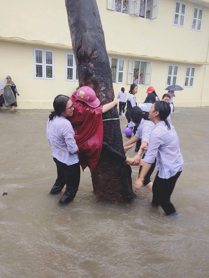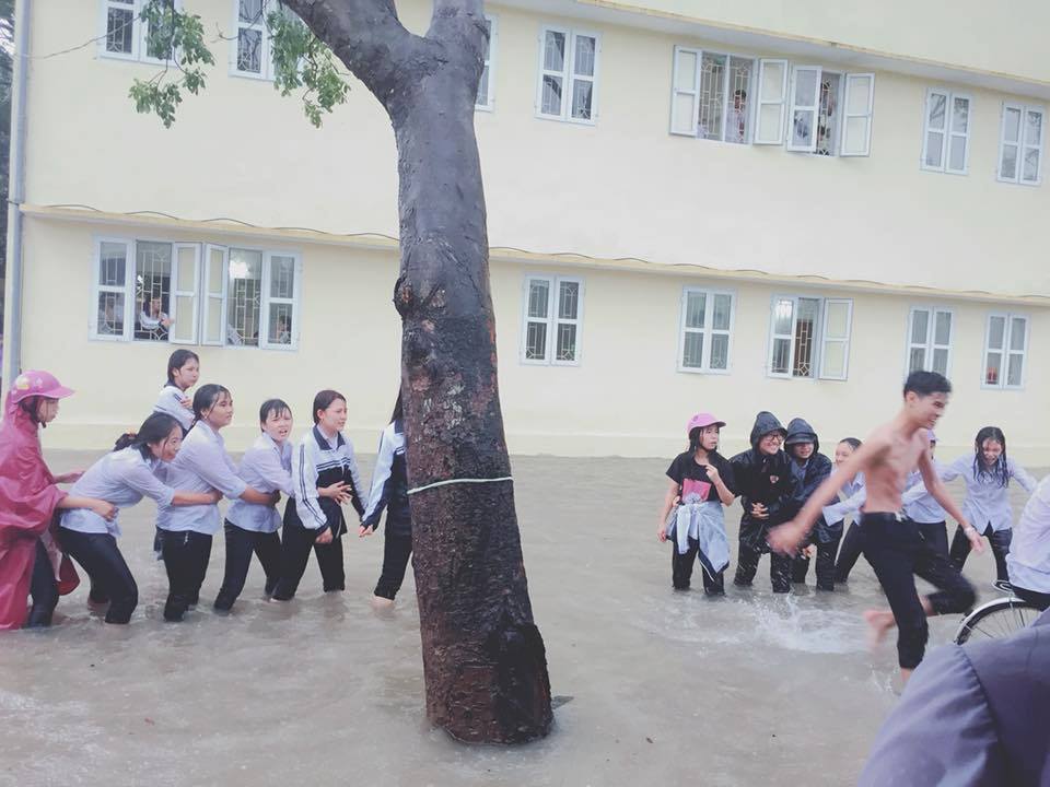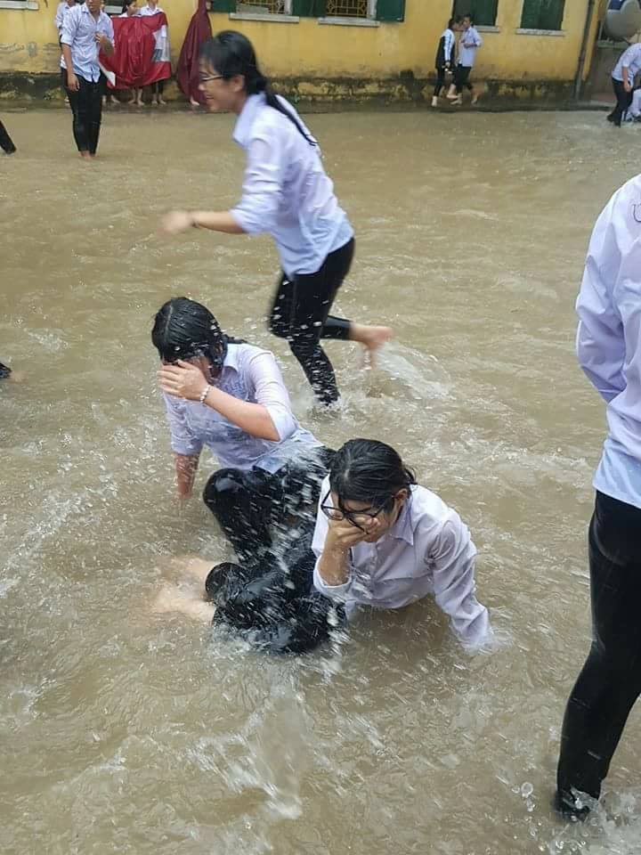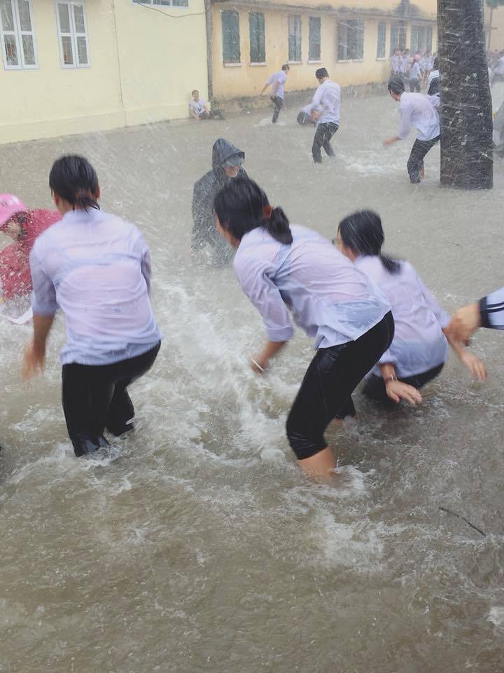 ”Nhìn là muốn đi học lại thôi. Ngày xưa, khi trường mình ngập, mặc dù thầy cô cho nghỉ tiết học, nhưng chẳng đứa nào muốn về nhà. Cứ ở lỳ trong trường và bày trò tắm mưa, bơi lội, chơi kéo co… Vui ngút trời. Về nhà chân tay đứa nào cũng bị ghẻ, nhưng bữa sau lại cứ tiếp tục” - chị Hoàng Oanh, một cựu sinh viên chia sẻ.