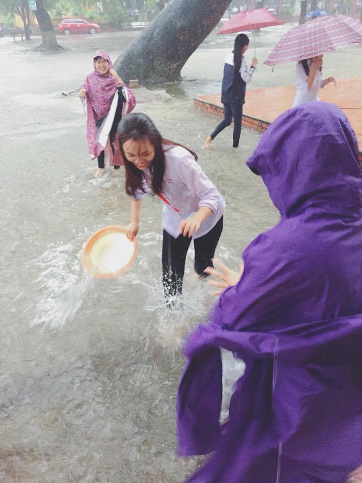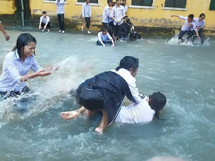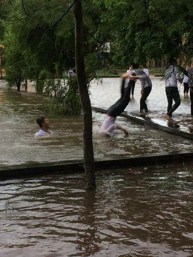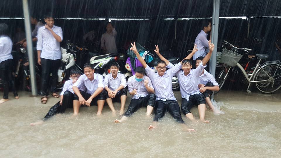 Học sinh các trường khác cũng thi nhau share ảnh ngập lụt ở trường mình. Xem qua một lượt, phải gật gù khẳng định một điều: Học trò rất thích ”em gái mưa”!