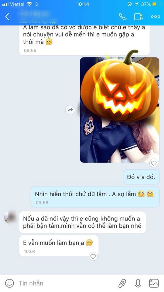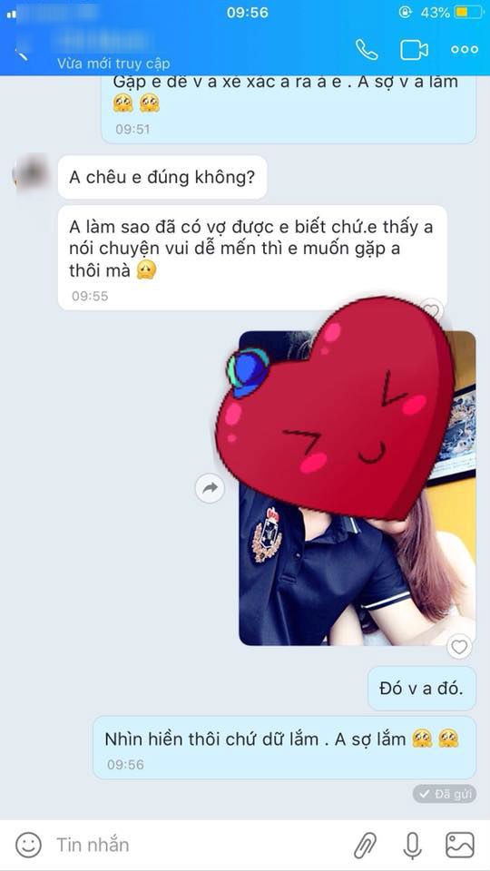 Khi thì em nhớ anh, khi thì em muốn làm bạn của anh trong khi để tránh bề khó xử với cô vợ hiện tại, chàng trai đã phải gửi ảnh chụp chung với lời nói thẳng: ”Vợ anh đó, nhìn hiền nhưng đanh đá lắm” để ”đuổi khéo” cô nàng mà ai ngờ, cô nàng này lại vẫn ”dai như đỉa”.