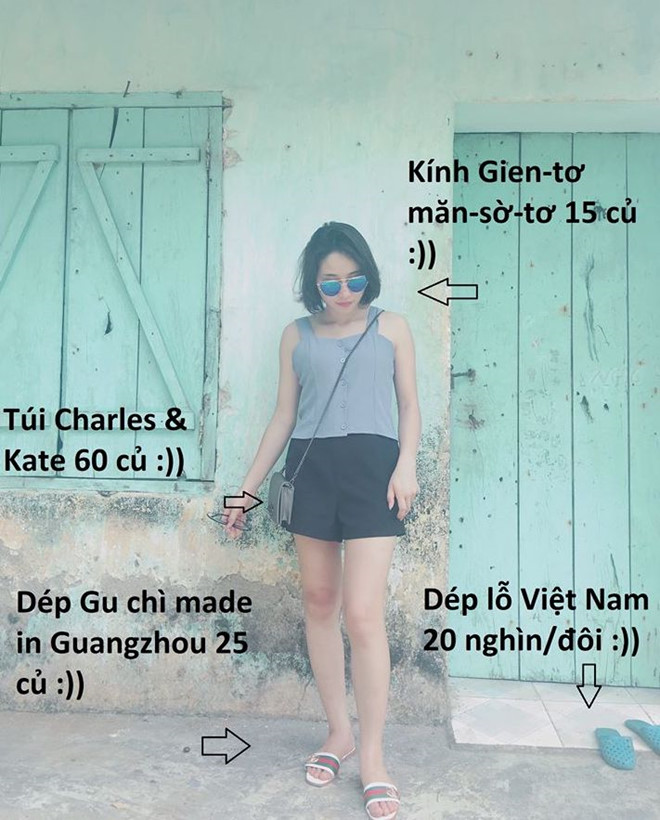 Không ít dân mạng bắt chước các bạn trẻ trong clip liệt kê giá tiền từng món đồ trên người. Ngoài những trang phục quen thuộc như áo, quần, giày thì nhiều dân mạng còn “chém” dép lào, khẩu trang, vớ với mức giá trên trời để tăng thêm độ hài hước.