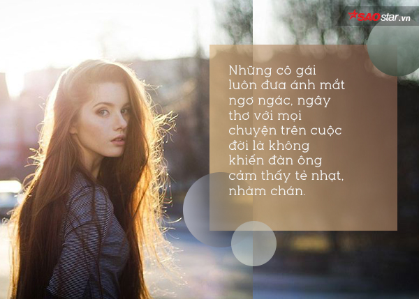 Đồng ý rằng người đàn muốn được thể hiện rằng mình hiểu hiểu biết hơn, có thể là chỗ dựa, bảo vệ người mình yêu nên cũng thường có xu hướng chọn những cô không quá giỏi giang, thông minh, hay độc lập cá tính. Nhưng điều đó không có nghĩa rằng những cô gái luôn đưa ánh mắt ngơ ngác, ngây thơ với mọi chuyện trên cuộc đời là không khiến đàn ông cảm thấy tẻ nhạt, nhàm chán hay không khỏi cảm thấy mệt mỏi với một cô nàng bánh bèo dụng suốt ngày nhõng nhẽo, dựa dẫm.