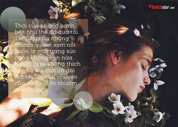 Thời của những bánh bèo như thế đã qua rồi. Thời đại của những “drama queen” xem nỗi buồn là trang sức cũng không còn nữa. Người ta sẽ không thích hẹn hò với một cô gái mà những câu chuyện của cô ấy luôn nhuốm màu bi kịch: công việc tồi tệ, cuộc sống buồn bã, tâm trạng tụt dốc…
