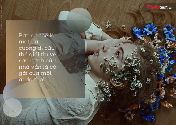 Thậm chí ở ngoài kia, bạn có thể là một nữ cường đi cứu thế giới thì về sau cánh cửa nhà vẫn là cô gái của một ai đó thôi. Nếu bạn cứ mang cái tôi lớn lao, mang sự tự tin giỏi giang của mình vào trong tình yêu: trở thành một cô bạn gái bướng bỉnh luôn cho mình đúng, cứng nhắc rằng anh phải thế tình yêu tương lai của bọn mình phải thế kia, và để những tôi luyện ngoài cuộc đời khiến bạn trở nên khô khan, gai góc thì dù bạn có thành công ở thế giới ngoài kia, bạn cũng sẽ thất bại trong tình yêu mà thôi. Vì bạn không phải là mẫu bạn gái mà người ta mong muốn.
