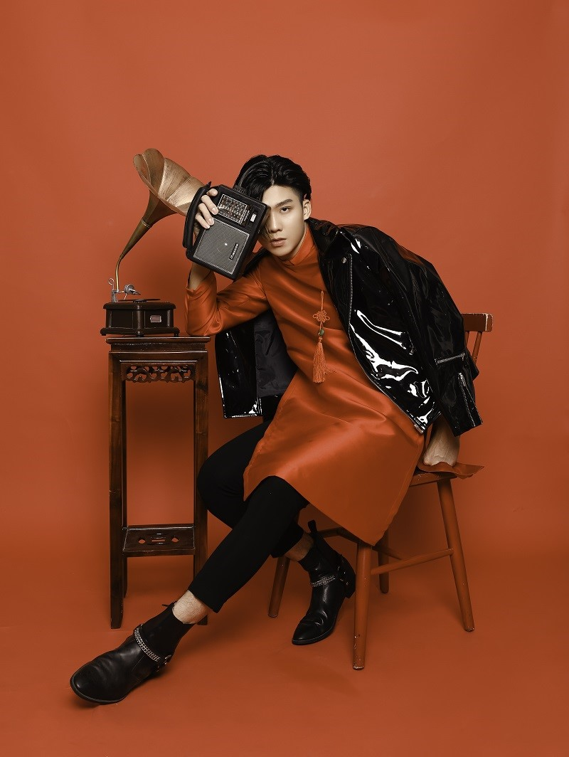 Không quá truyền thống giống hai cô bạn, rapper Soho lựa chọn xu hướng “tân cổ giao duyên”. Kết hợp giữa áo dài nam cùng vest hoặc áo khoác da, anh chàng đã đem đến bầu không khí hiện đại, đầy nam tính và thời thượng, phản ánh tinh thần phóng khoáng, thích sáng tạo đổi mới nơi giới trẻ hiện nay.