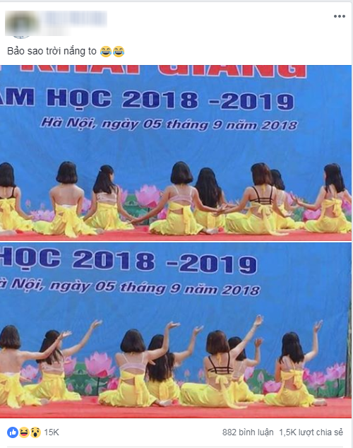Theo người đăng tải, đây là tiết mục trong lễ khai giảng tại một trường THPT ở Hà Nội vào ngày 5/9 vừa qua. Sau khi đăng tải, hình ảnh đã bị chỉ trích vì gây “chướng tai gai mắt”. Nhiều người phản đối vì cho rằng các nữ sinh trong hình ảnh trên không ăn vận khéo léo khiến trang phục trở nên phản cảm.