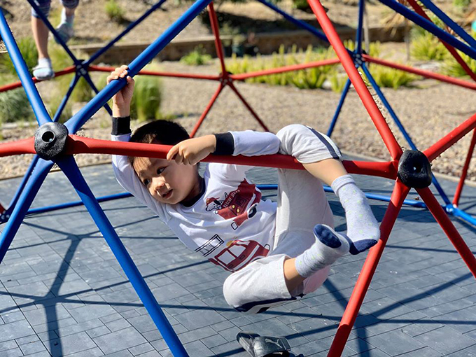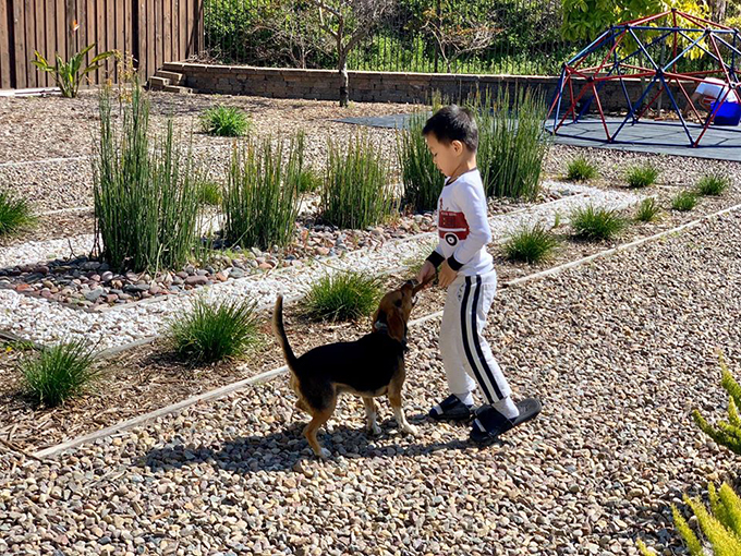 Con trai của Diệu Hương chơi đùa trong khu vườn