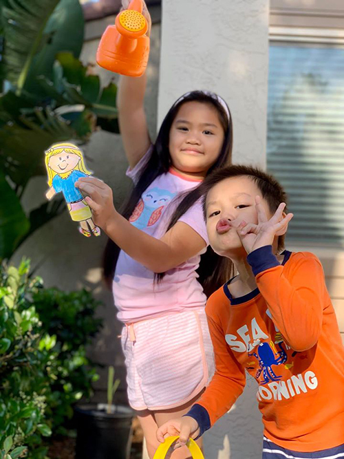 Con gái, con trai Diệu Hương chơi đùa cùng các anh chị em họ trong vườn