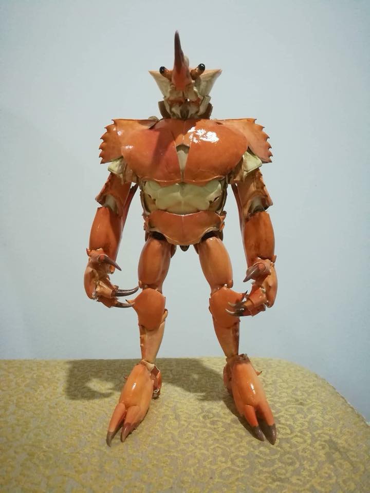 Theo hình ảnh ghi lại, sau khi thanh niên ăn xong cua biển, có lẽ rảnh rỗi không có việc gì làm nên đã lắp ráp thành “siêu nhân”. Điều đáng nói, khi nhìn những hình ảnh trên chúng ta dễ dàng nhận ra sản phẩm này được chủ nhân chế tác rất tỉ mỉ. Thậm chí nhìn hai bên còn tương xứng với nhau đến từng cm.