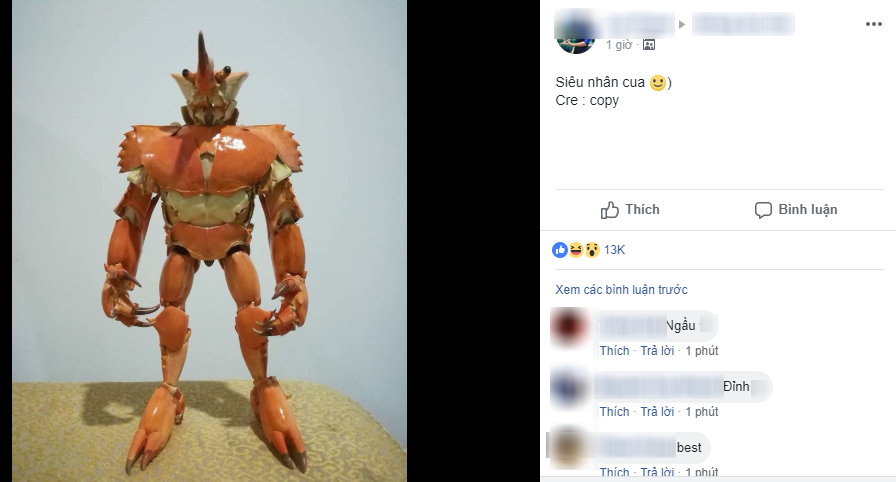 Bài viết L.P kèm hình ảnh “siêu nhân cua” ngay sau khi đăng tải đã nhanh chóng thu hút sự chú ý của đông đảo mọi người.