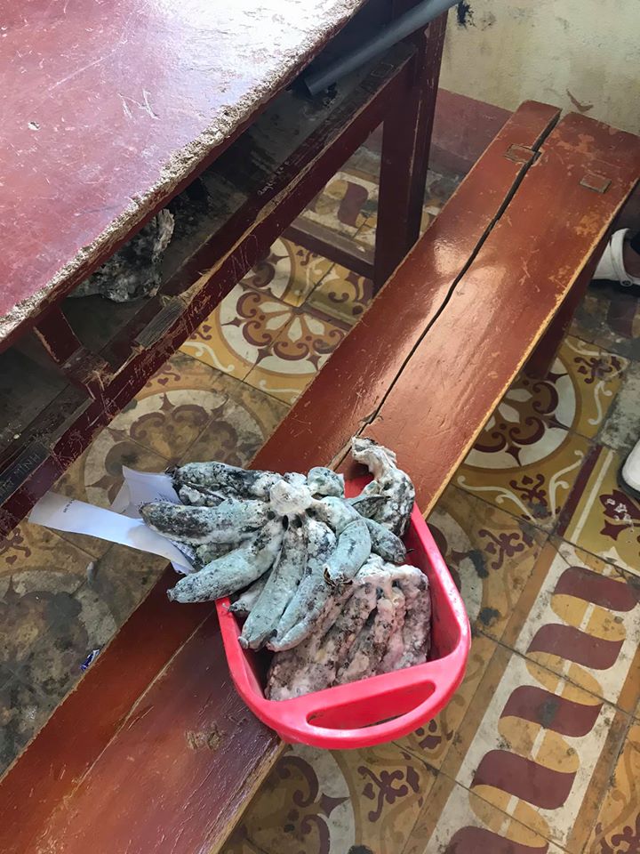 “Vật thể lạ” kia hóa ra là nải chuối xanh bị bỏ quên từ trước Tết đến nổi mốc xanh, mốc trắng hết cả lên