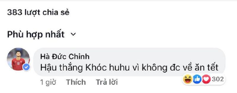 Chưa dừng lại ở đó, Hà Đức Chinh - “cây hài” của U22 Việt Nam đã trở thành “trùm cuối” trong việc trêu chọc đàn em. Nhân lúc các đồng nghiệp đang mải mê quay, chụp Văn Hậu, Đức Chinh đã nhanh nhảu vào trang cá nhân của em út và “mách lẻo” với fan rằng Hậu khóc nhè vì không được về quê ăn Tết.