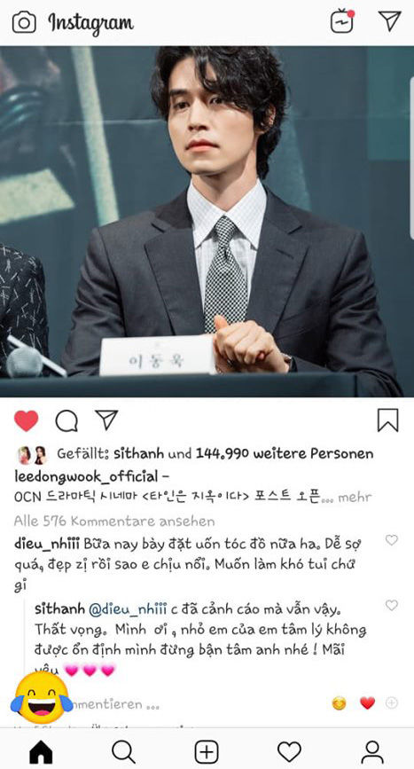 Cụ thể, đôi bạn thân thiết này từng “khẩu chiến” công khai vì nam tài tử xứ Hàn Lee Dong Wook cách đây chưa lâu. Cả Sĩ Thanh lẫn Diệu Nhi đều yêu mến diễn viên Lee Dong Wook, thế nên khi nam tài tử này đăng tấm ảnh mới trên Instagram, Diệu Nhi đã không ngần ngại bình luận rằng: “Bữa nay bày đặt uốn tóc đồ nữa ha. Dễ sợ quá, đẹp vậy rồi sao em chịu nổi. Muốn làm khó tôi chứ gì”. Thấy vậy, Sĩ Thanh đã không ngần ngại đáp trả, hòng khẳng định lại “chủ quyền” với Lee Dong Wook: “Chị đã cảnh cáo mà vẫn vậy. Thất vọng. Mình ơi, nhỏ em của em tâm lý không được ổn định mình đừng bận tâm anh nhé! Mãi yêu”.