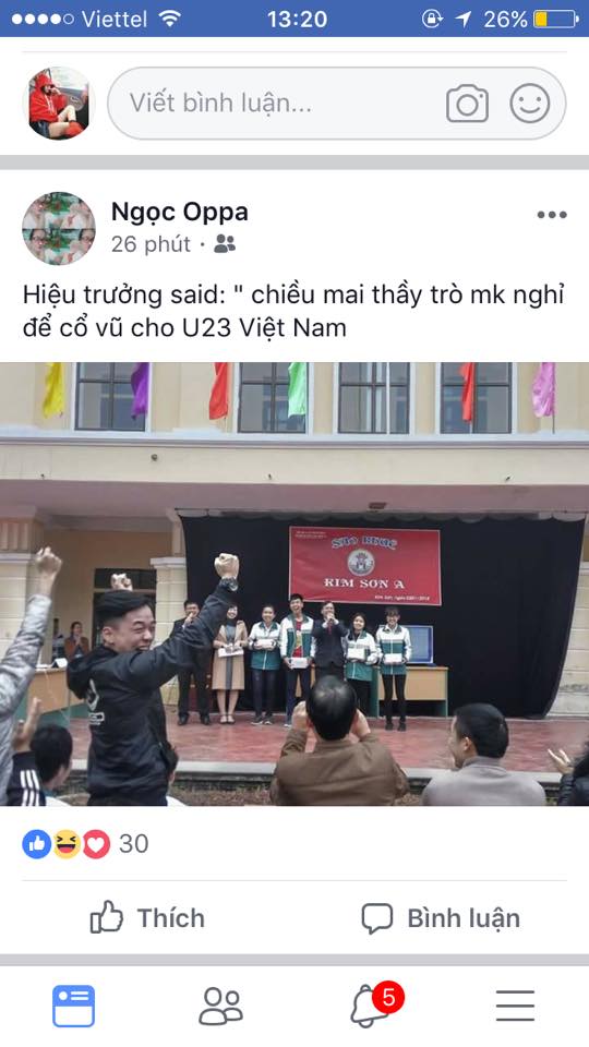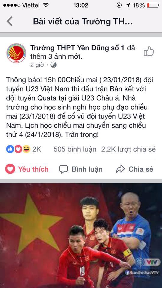 Không chỉ đại học mà các thầy cô ở trường cấp 3 cũng rất tâm lý khi cho nghỉ học phụ đạo để cổ vũ đội tuyển Việt Nam.