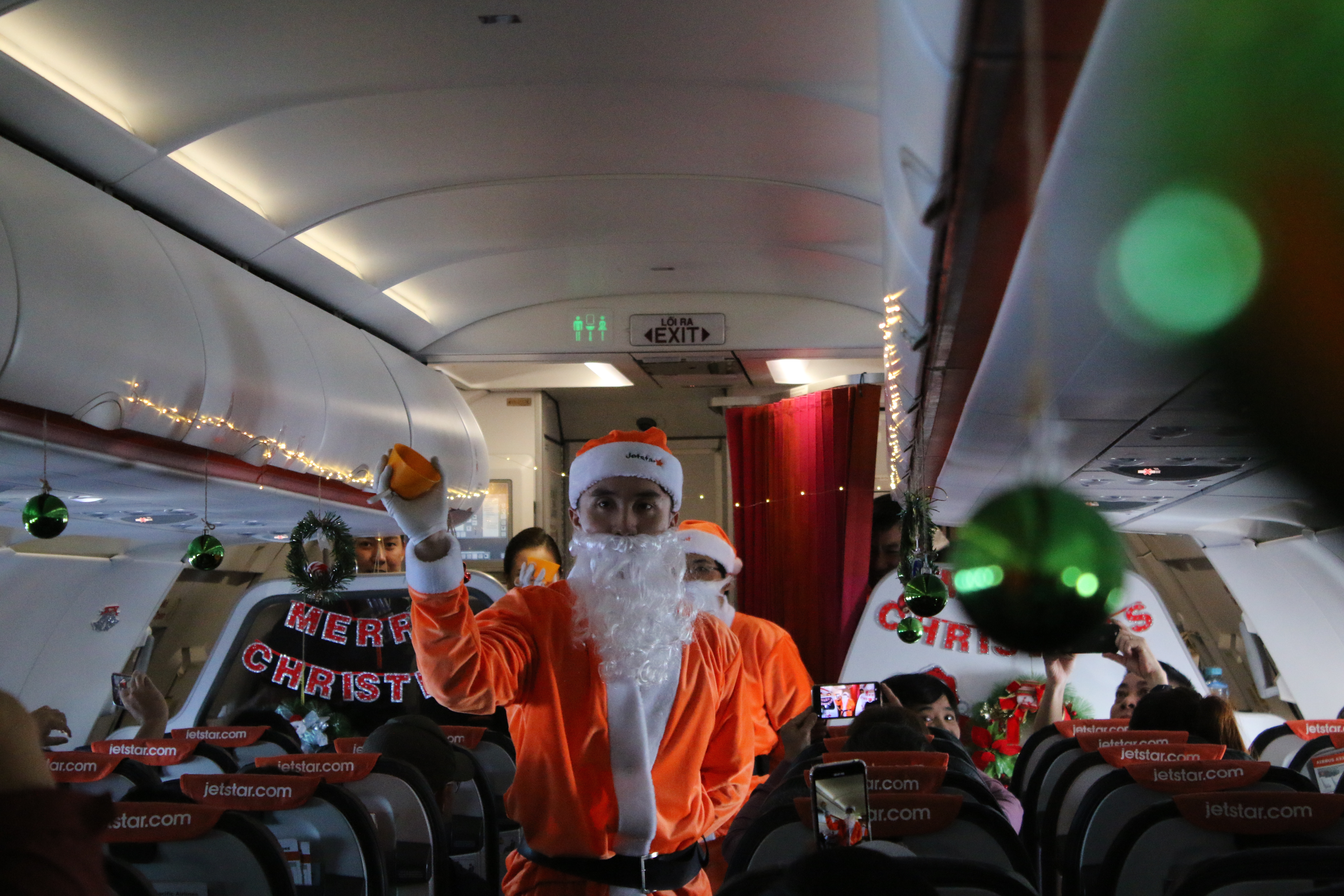 Các ông già noel từ Jetstar sớm có mặt trên chuyến bay để chuẩn bị, hứa hẹn mang đến những bất ngờ thú vị cho hành khách.