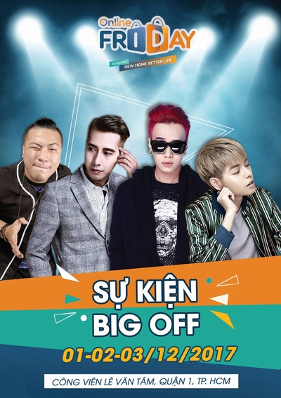 Bên cạnh 24 giờ vàng “săn” hàng giảm giá khủng, người tiêu dùng sẽ có cơ hội tham gia Sự kiện BIG - OFF thuộc khuôn khổ chương trình được tổ chức tại công viên Lê Văn Tám, Võ Thị Sáu, phường Đa Kao, Q.1, Tp. Hồ Chí Minh trong 03 ngày 01,02,03 tháng 12. Sự kiện BIG - OFF Online Friday 2017 có thể nói là một trong những sự kiện về thương mại điện tử và mua sắm trực tuyến lớn nhất năm. Sự kiện năm nay sẽ có sự góp mặt của hơn 100 thương hiệu đến từ các doanh nghiệp top đầu cả nước.