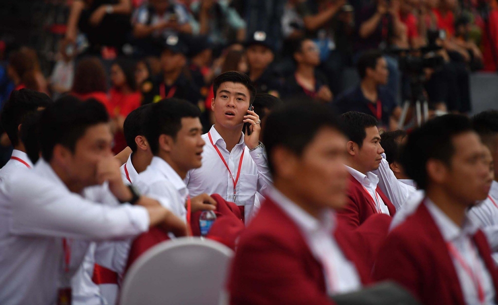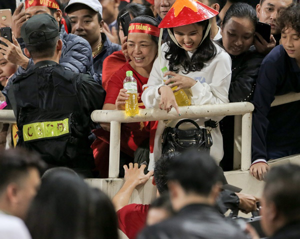 Không hiếm lần các cổ động viên ngồi trên khán đài thấy Duy Mạnh tiến về phía bạn gái ngay sau khi trận đấu kết thúc chỉ để đưa nước và chào tạm biệt cô. Trận đấu tối ngày 19/11 giữa Việt Nam và Thái Lan cũng không phải ngoại lệ.