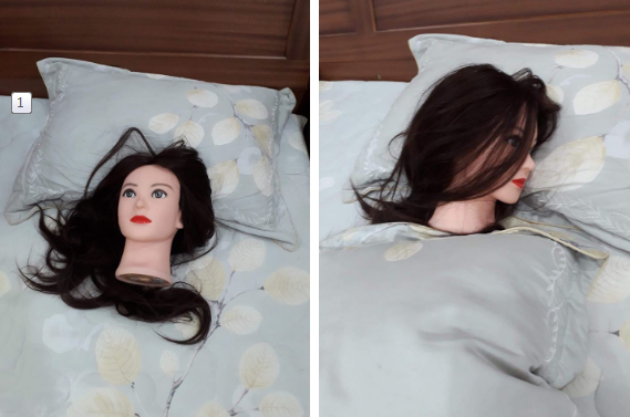 Chiếc đầu của một ma-nơ-canh với mái tóc dài được ”hóa trang” khá cẩn thận