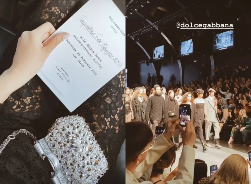 Ngày 23/2, cô có mặt trên những hàng ghế đầu của show Dolce&Gabbana tại Ý.