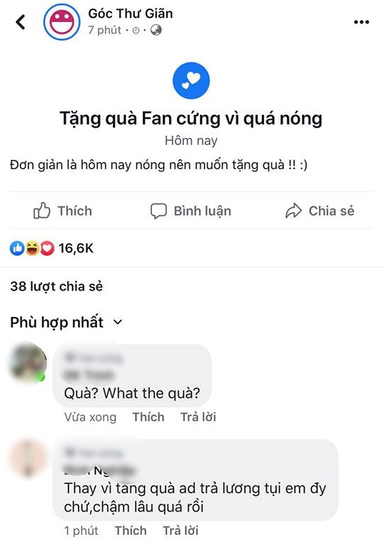 Nên tặng quà fan cứng vì vẫn comment dù trời nắng nóng.