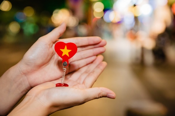 Chiếc cờ tim nhỏ gọn, tinh tế và vô cùng tiện dụng được xem là linh hồn của chiến dịch “Chúc Mừng Sinh Nhật Việt Nam”. Các bạn trẻ có thể sáng tạo hết mức trong cách dùng cờ tim để chiếc cờ có thể theo chân bạn đến khắp mọi nơi, làm tất cả mọi việc. Được biết Cờ Tim được thiết kế và sản xuất độc quyền bởi Sen Đỏ.