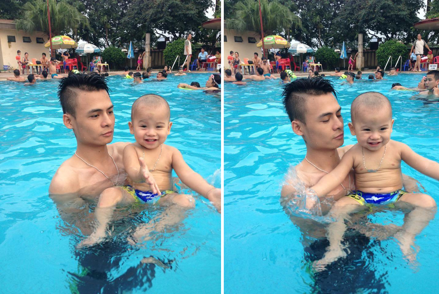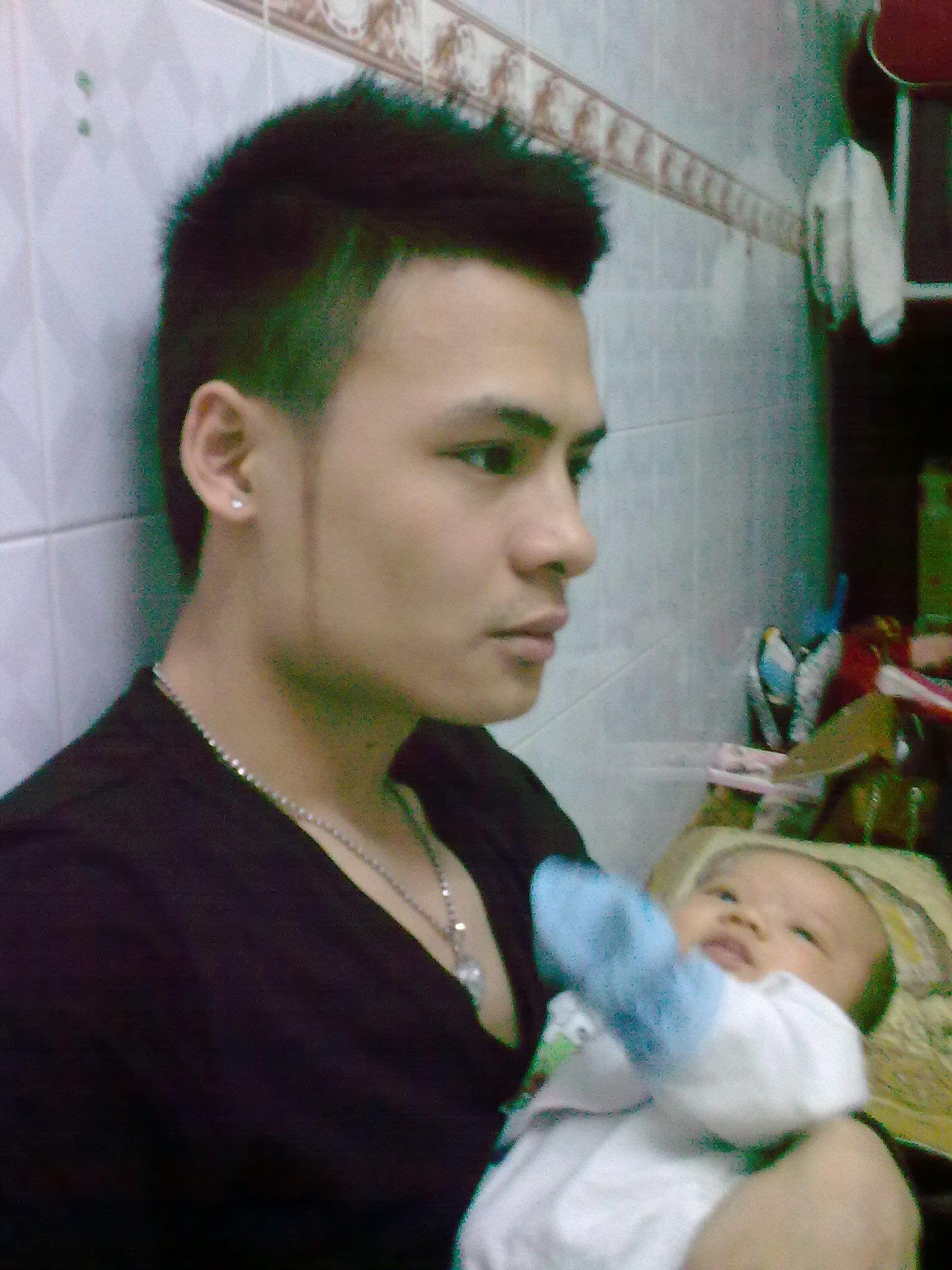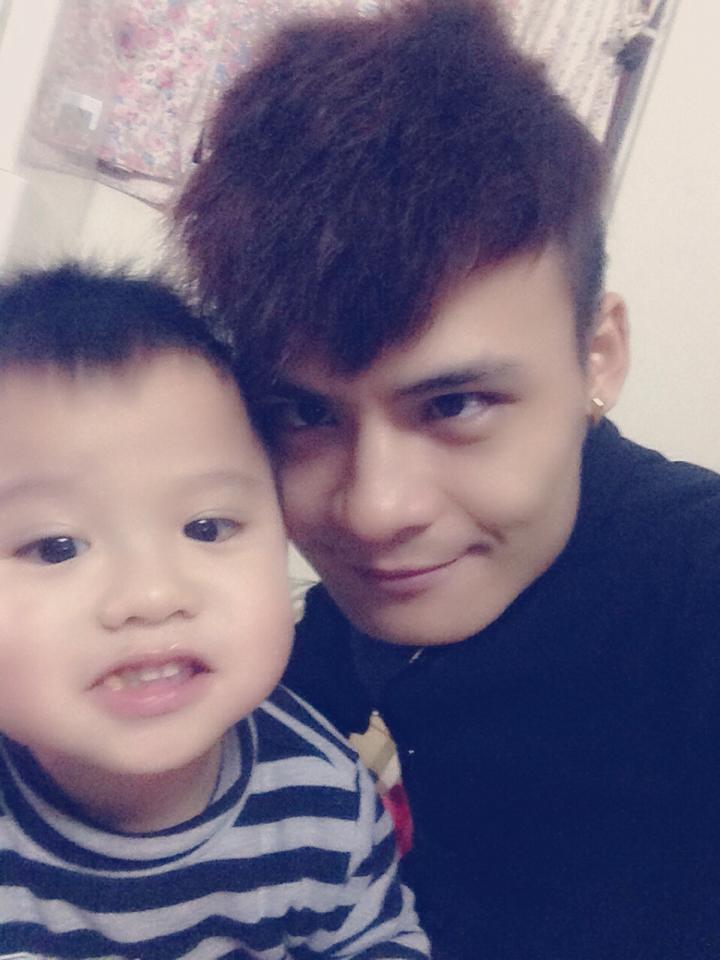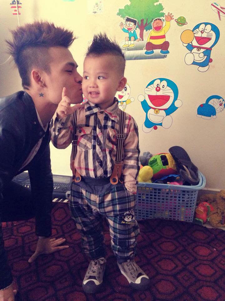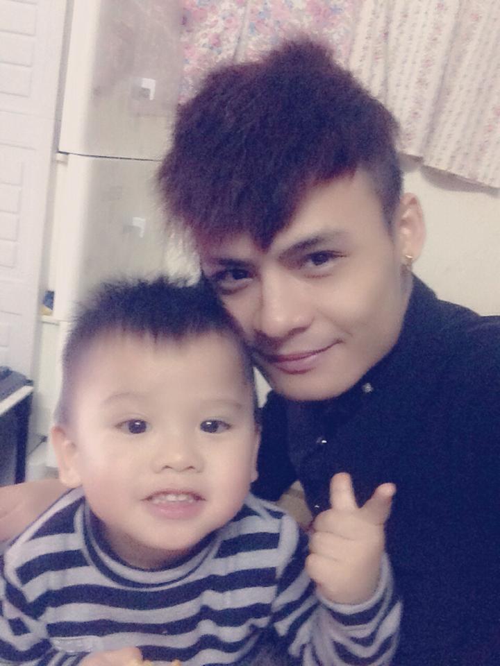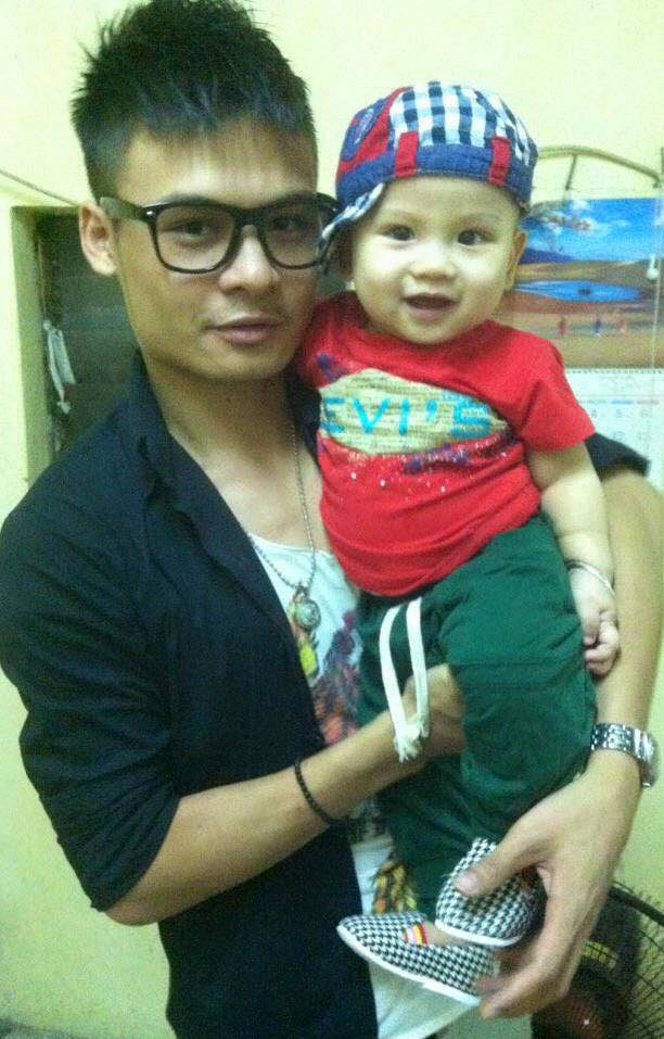 Hoa Vinh ẵm cháu trên tay vào khoảng năm 2012 - trông như một ông bố trẻ thực thụ