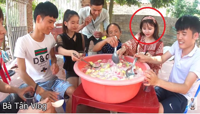 Sự nổi tiếng đó cũng kéo theo nhiều tên tuổi khác được chú ý. Được biết, mỗi khi bà Tân làm xong một món ăn khổng lồ nào đó, bà lại mời các bạn trẻ tới nhà cùng thưởng thức Và trong số đó, có một cô gái khá xinh xắn đã trở thành tâm điểm chú ý.