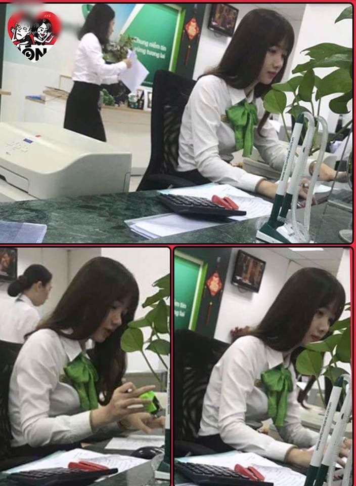 Nữ nhân viên ngân hàng xinh đẹp (Ảnh: Hóng)