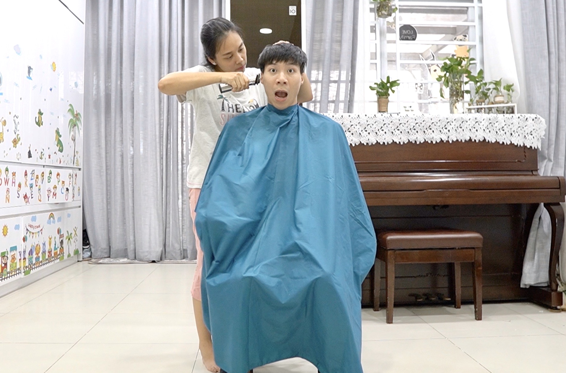 Anh nửa đùa nửa thật: “Nghiệp rất chú trọng về đầu tóc. Nghiệp luôn hớt tóc ở chỗ quen. Nhưng bây giờ cách ly xã hội, tiệm tóc cũng đóng cửa nên phải giao phó cho Mai. Nghiệp không yên tâm lắm nhưng thôi, lỡ có cắt xấu thì 15 ngày cũng ở trong nhà chứ có đi đâu mà phải lo”.