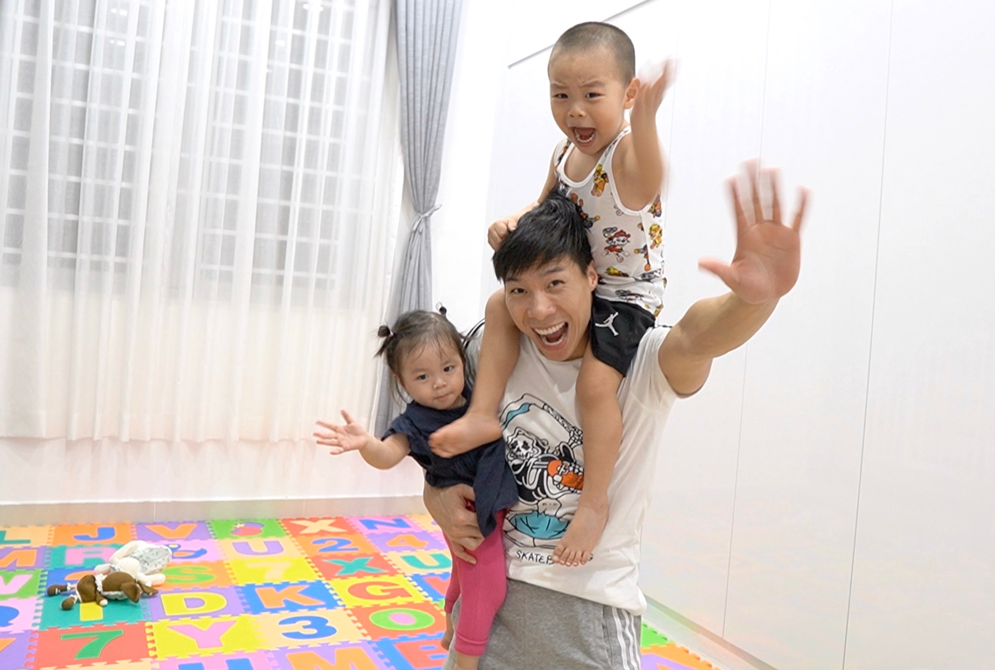Để 2 bé Hùng Tâm và Mì Mí Tâm An không cảm thấy nhàm chán khi ở trong nhà, hai vợ chồng Quốc Nghiệp - Ngọc Mai quyết định “chế” thêm một không gian giống như một nhà trẻ thu nhỏ cho các con vừa chơi vừa học. Vì có rất nhiều đồ chơi nên 2 bé rất vui và thậm chí còn tự chơi, không làm phiền bố mẹ.