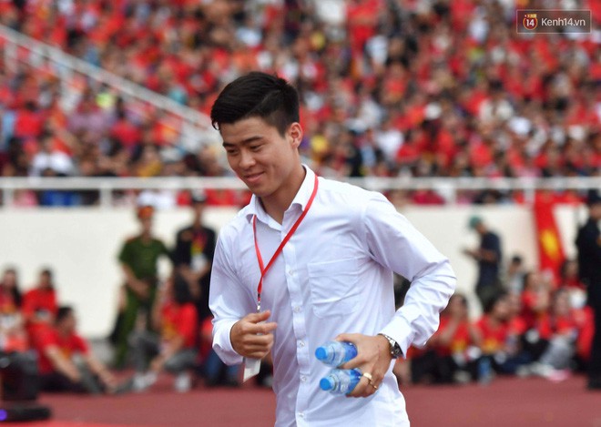 “Bỏ rơi” đồng đội, Duy Mạnh đã cầm theo 2 chai nước chạy tới chỗ bạn gái vì sợ cô khát nước.