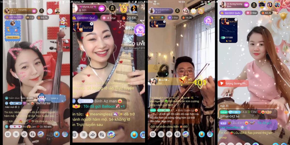 Trong thời gian vừa rồi thì không chỉ những ca sĩ nổi tiếng, những bạn tài năng ca hát tham gia hoạt động tại Bigo Live mà rất nhiều tài năng về nhạc cụ dân tộc như đàn tranh, đàn tì bà, đàn bầu, hồ lô, sáo…cũng đã tham gia và hoạt động sôi nổi trên Bigo.