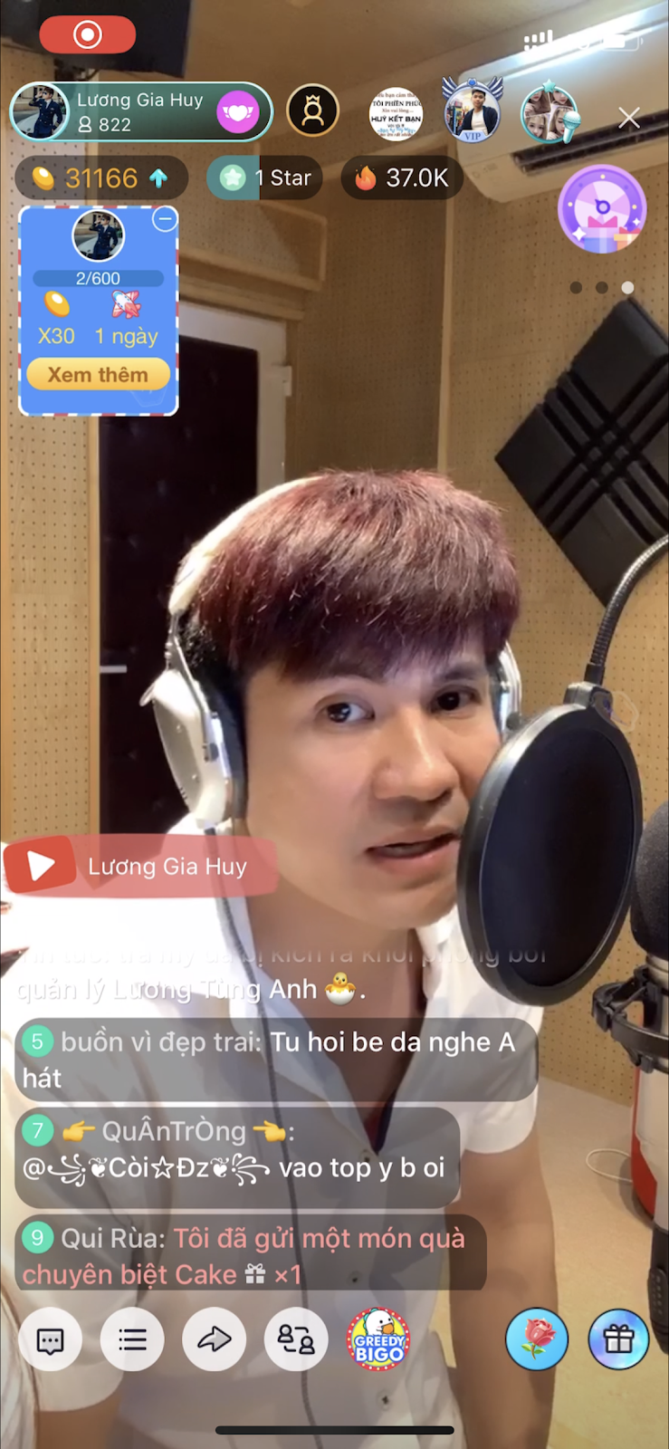 Ca sĩ Lương Gia Huy đang hát cho fan hâm mộ trên Bigo nghe..