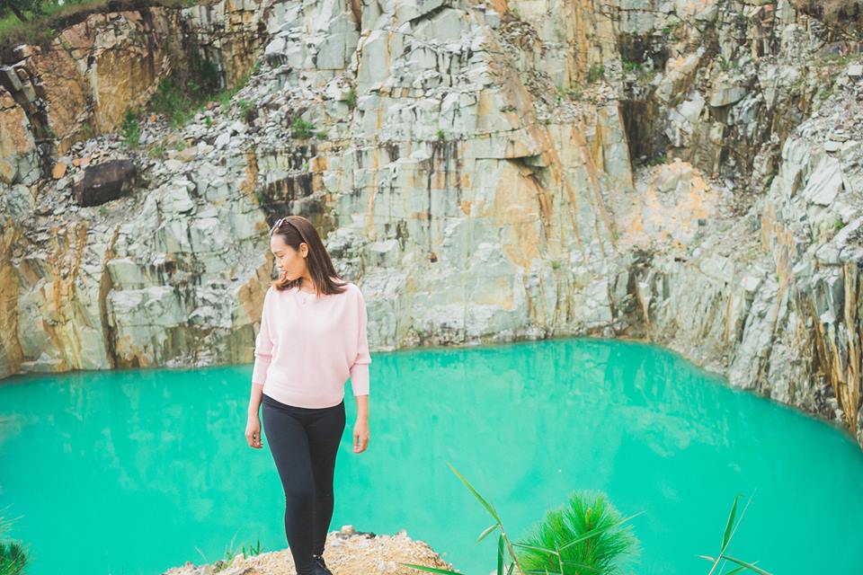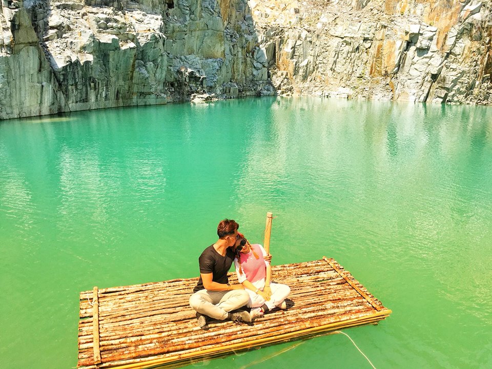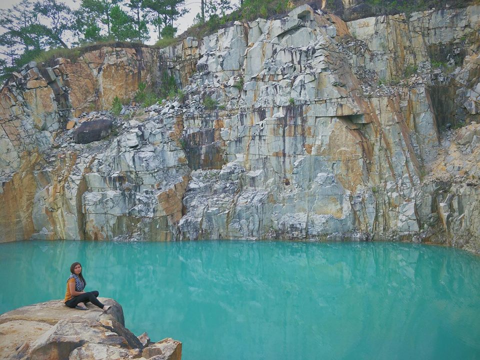 Bao bọc xung quanh hồ nước là được những mảng đá lớn cao sừng sững nhiều màu sắc, nước ở đây có màu xanh ngọc và được chảy ra từ những khe đá nên càng khiến cho người xem có cảm giác như đang lạc trong một “thánh địa” đẹp mê hồn.