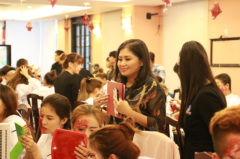 Bà Nguyễn Thị Kim Châu, giám đốc một trung tâm có khóa học trang điểm “khác lạ” chia sẻ mấy năm nay, học viên đăng ký khóa trang điểm ma quỷ ngày càng đông. “Điều quan trọng nhất là các bạn yêu thích trang điểm, dám thử thách với những phong cách mới lạ, vận dụng khả năng sáng tạo của mình”, bà Châu cho biết.