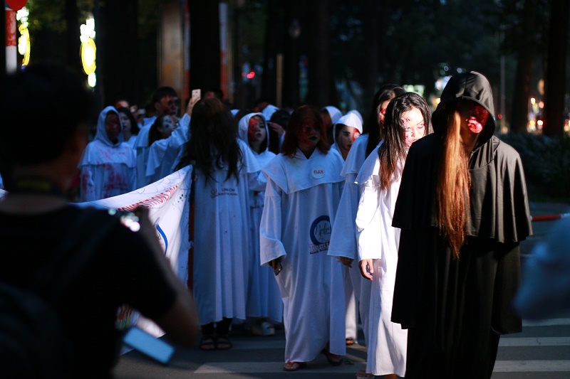Bạn cũng dễ dàng bắt gặp những “khuôn mặt”, những tạo hình đáng sợ của giới trẻ trong thời gian này trên đường phố hay các lễ hội.
