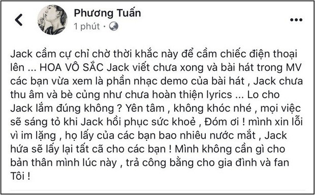 Dòng trạng thái gây xôn xao của Jack giữa “bão” ồn ào.