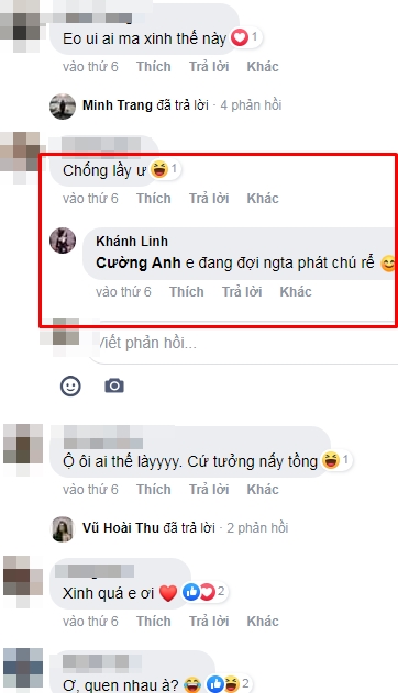 Tuy nhiên, Khánh Linh đã lập tức đính chính thông tin này trên trang cá nhân. Cô cho biết mình chỉ đang làm mẫu ảnh cho một cửa hàng váy cưới, chứ không hề có đám cưới nào. Ngay dưới bài viết về bộ ảnh diện váy cưới, nhiều người vào thắc mắc chuyện Khánh Linh chuẩn bị lấy chồng. Trả lời một người bạn, cô cho hay: “Đang đợi người ta phát chú rể”.