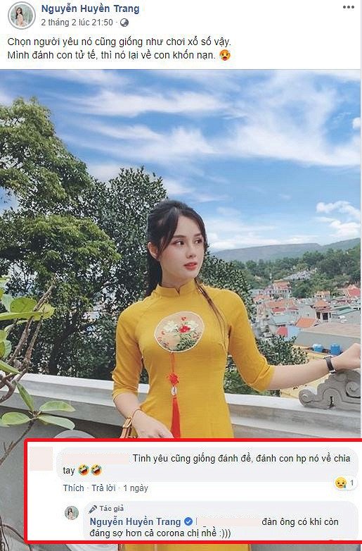 Trước đó, khi Huyền Trang bị kẻ xấu hack Facebook và đòi tiền chuộc, Trọng Đại đã gửi lời an ủi ngọt ngào đến bạn gái. Tuy nhiên, chỉ vài ngày sau, Huyền Trang lại có những bài viết đầy ẩn ý trên mạng xã hội.