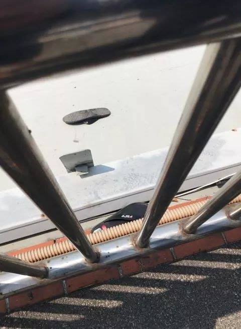 Thanh niên bỏ lại cả xe máy và đôi dép trên cầu Thuận Phước. Ảnh: Facebook