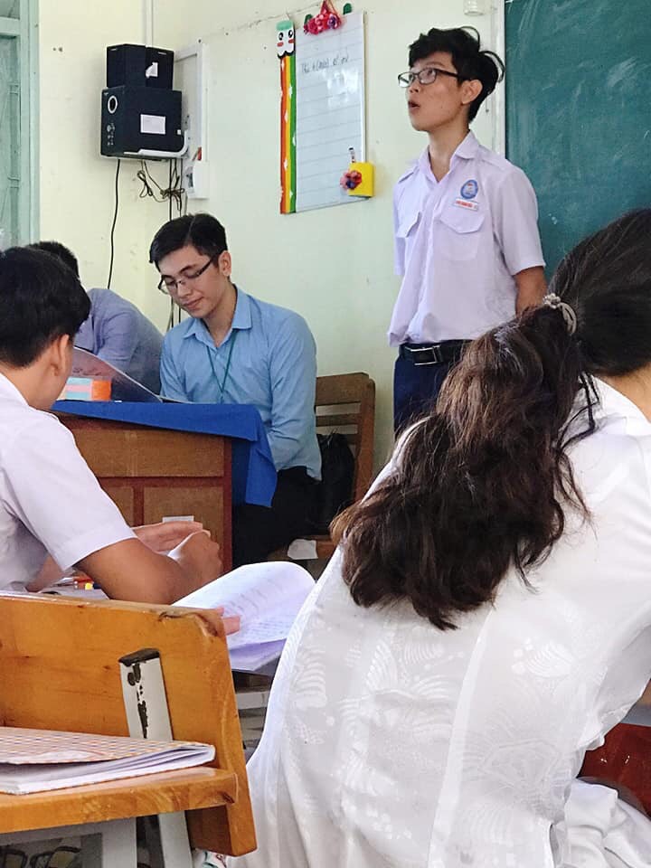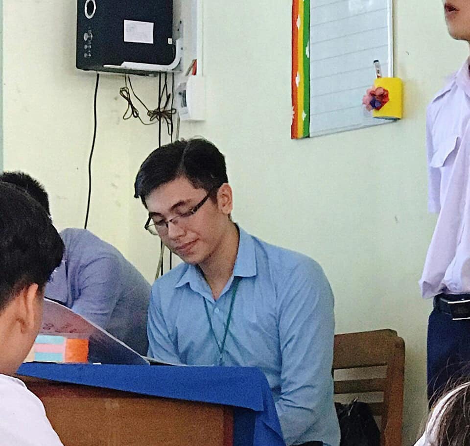Trên trang diễn đàn lớn đã đăng tải 2 bức ảnh chụp lén thầy giáo thực tập đang kiểm tra bài cho học sinh. Chàng trai đeo cặp kính đen trong trang phục sơ mi xanh cùng mái tóc gọn gàng, chiếc mũi thẳng và hơi mỉm cười đã ngay lập tức lọt vào tầm ngắm của hội chị em. Dưới phần bình luận, dân tình thi nhau dành lời khen ngợi và truy tìm danh tính thầy giáo điển trai này.