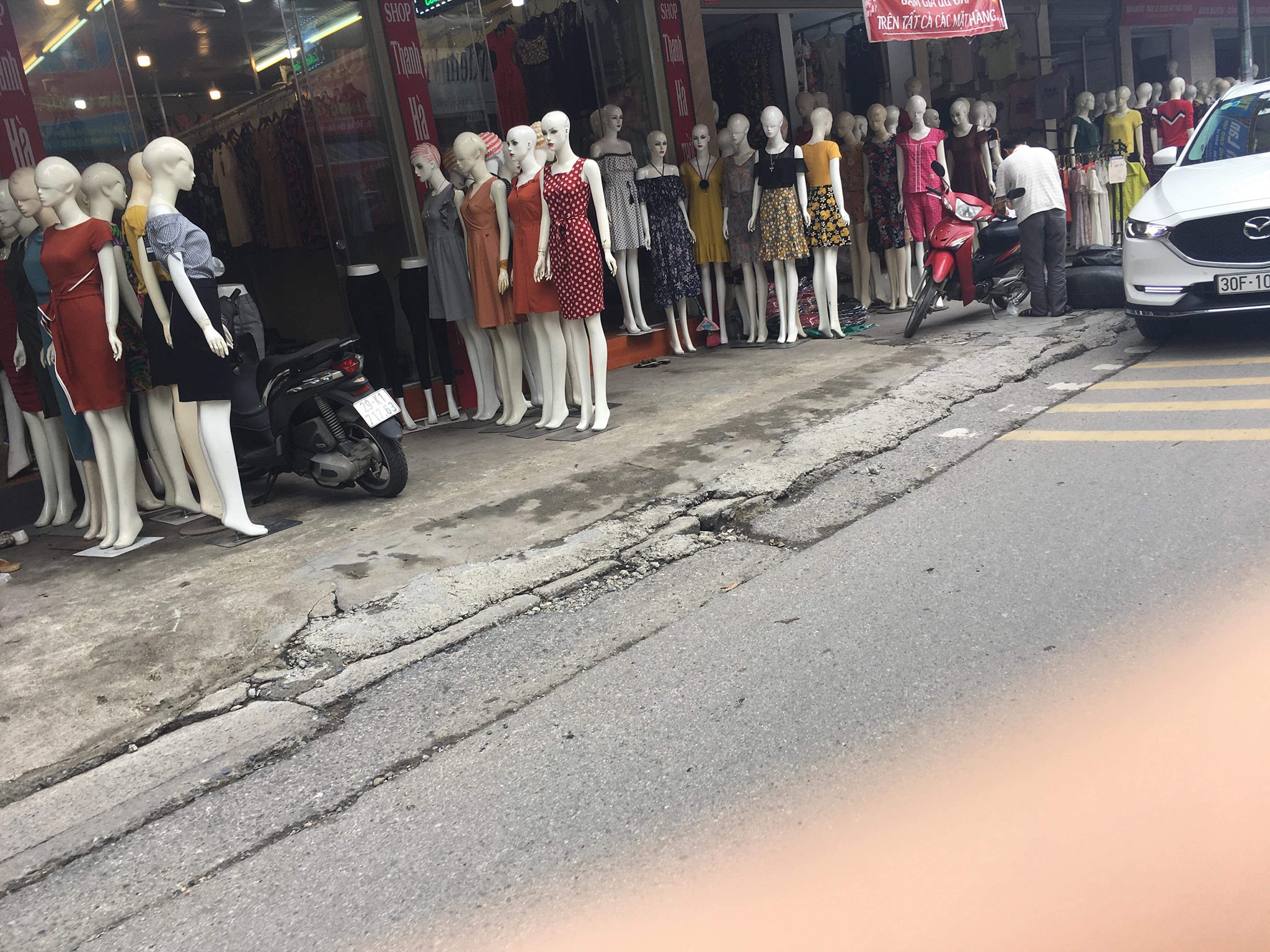 Clip ghi lại hình ảnh hai bên đường các quán quần áo nối đuôi nhau hơn 2km vẫn chưa hết. Thậm chí bên ngoài hàng trăm ma-nơ-canh đứng xếp hàng chưng diện các mẫu mã mới nhất như “mời gọi” các chị hãy đến bên em đi! Thế mới nói các cô gái mà đi qua đây chỉ có lúc đi đầu túi, lúc về trống trơn.