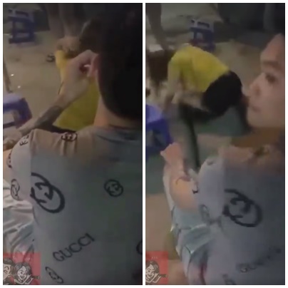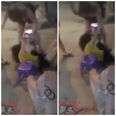 Nam thanh niên chỉ ngồi cười và thản nhiên để người yêu cũ bị người yêu mới đánh chửi.