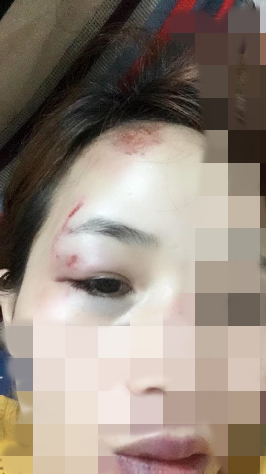 Gương mặt của H nhiều vết thương và bầm tím sau khi bị đánh.