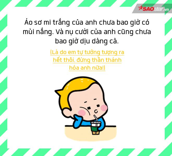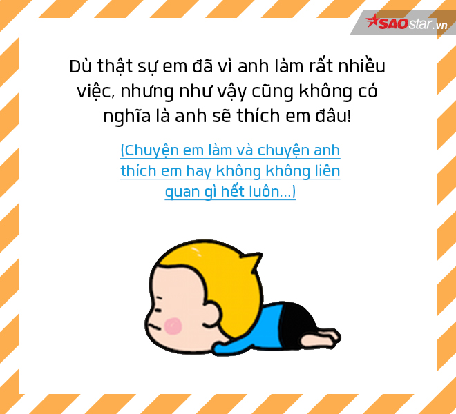 Những câu dưới đây đích thị là quà dành tặng riêng cho những cô nàng cứ mải mê crush ai đó mà không chịu nhận ra sẽ không có kết quả. Đã đến lúc thức tỉnh và chấp nhận sự thật rằng mình đã kiên trì sai chỗ, cần phải buông bỏ càng nhanh càng tốt thôi!
