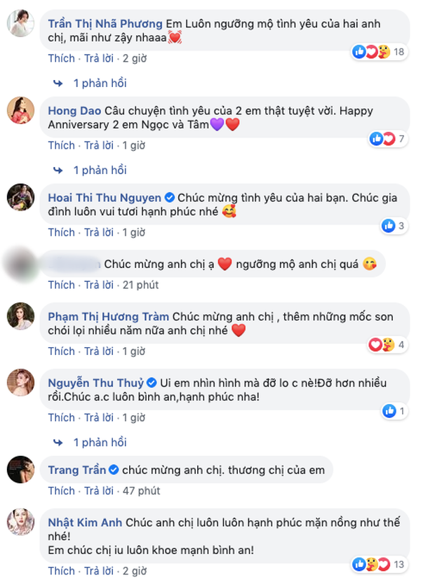 Đông đảo nghệ sĩ, bạn bè đã gửi lời chúc mừng tới nữ ca sĩ, đồng thời cũng thể hiện sự ngưỡng mộ đối với tình cảm vợ chồng của Hồng Ngọc và Thomas Tâm